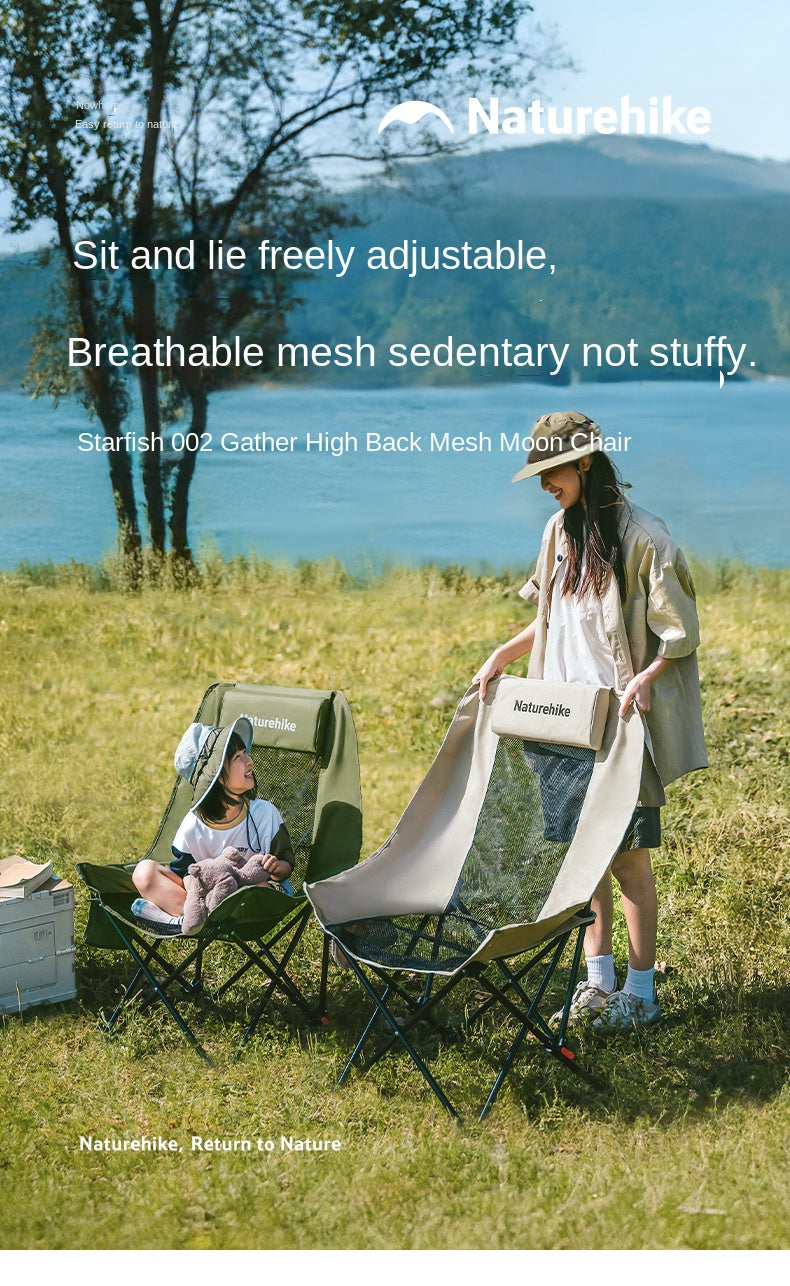 Naturehike SEA STAR 002 High Back Moon Chair Portable Lightweight Folding Adjustable Reclining Chair With Removable Head Pillow Camping Polyester Carbon Steel